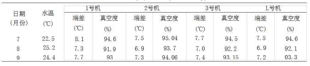3、4號機組正式投產后,自動膠球清洗裝置系統亦隨之投運,操作原則與1、2號機組相同,成為定期工作。由凝值工操作,副班長監護,并將清洗情況詳細記錄于運行日志中。從1996年夏季運行工況看,4臺機組的自動膠球清洗裝置系統的正常投運,使機組均處于較好的經濟運行水平,見表3。