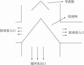 該廠通過提高收球網(wǎng)的位置來減少膠球在凝汽器循環(huán)水出水管中的活動空間,同時設(shè)置一個膠球?qū)Я靼澹鐖D6所示,引導膠球進入膠球泵入口位置。