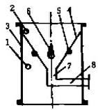 注:1,2.3—同圖2,4—網板,5——軸,6——導流翼,7——集球箱,8——膠球引出管