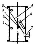 注:1——網后測壓點,2——網前測壓點,3——收球網外殼,4——導流板.5——軸,6——網板,7——膠球引出管