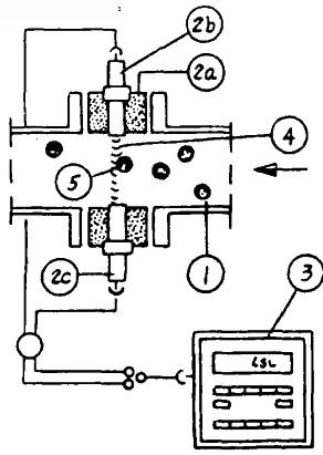 1—膠球再循環管;2—光屏;2a—連接件;2b—發射器;2c-接受器;3—微處理器(BRM-1P);4—紅外線光束;5—軟膠球