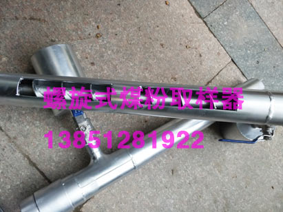 該螺旋式煤粉取樣器設(shè)計(jì)采用螺旋輸送原理,當(dāng)煤粉沉落在取樣嘴中,利用外部的手柄或電動執(zhí)行機(jī)構(gòu)旋轉(zhuǎn)螺旋輸送裝置,煤粉將通過取樣管送到落粉管進(jìn)入取樣瓶中。