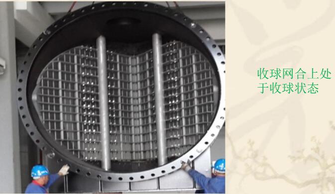 收球網安裝在冷卻水出口管段上,從凝汽器流