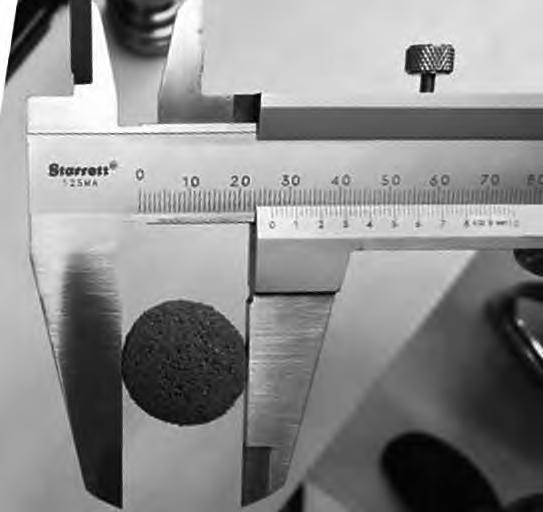 為確保實驗數據的客觀真實性和滿足設備制造廠家的要求,實驗期間除手動操作需要外,膠球清洗系統按設備說明要求保持24h自動模式下連續運行。機組大修期間已檢查確認系統管路通常,收球網動作順暢,網板格柵間距7mm,無遺留雜物。單側膠球投入量按凝汽器單流程換熱管數量的7%~13%執行,本次試驗單側獨立加注膠球,保證技術設計上滿足1h內有12個膠球平均通過每根鈦管。試驗膠球選用日常使用的膠球即26-P-150-3,其中:26為膠球直徑,P150為材料(標準棕色磨料球),3為硬度(中等彈性),滿足膠球直徑大于凝汽器鈦管1~2mm的要求(圖2)。膠球投運前進行泡水試驗,再對比前后尺寸(圖3)。選定大修結束后投運的2#機組膠球清洗系統,A、B側同時進行試驗。檢修部與運行部密切協作完成。