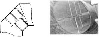 由于現場空間有限,不可能在收球網上方留出相當的直管段,因此,在凝汽器出水彎管段中水平焊接一不銹鋼折流板,見圖3。該折流板位于彎管段中心線處,將循環水流一分為二,用以規整彎管內循環水流,使循環水能夠均勻地流經收球網,以利于膠球收集。