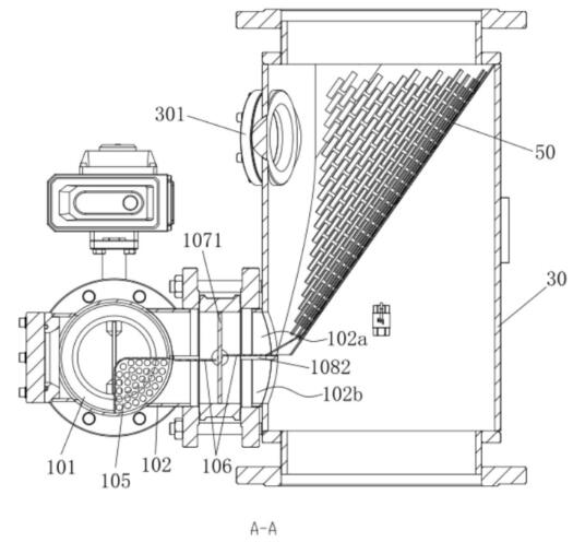 捕球濾網(wǎng)的出口端連通用于在膠球和水流進(jìn)入出水管時利用壓差將膠球回收至球水分離