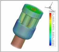 由圖10可以看出,流體通過C型膠球清洗裝置時(shí),通過速度比較快,流動比較平穩(wěn),利于膠球快速通過投球圖10C型膠球清洗裝置流動跡線圖裝置進(jìn)入冷卻管,投球效果比較好。