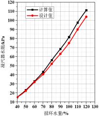 凝汽器水阻是凝汽器冷卻水在水側(cè)流動的阻力,一般由凝汽器冷卻管水阻、凝汽器水室及管端水阻組成。對于數(shù)值計(jì)算模型,設(shè)置不同的進(jìn)口流速能得到不同的水阻,將其與凝汽器設(shè)計(jì)時(shí)測得的實(shí)驗(yàn)數(shù)據(jù)進(jìn)行比較,凝汽器水阻的大差值為9.2%,計(jì)算結(jié)果和設(shè)計(jì)結(jié)果差異較小,模型選用適當(dāng)。